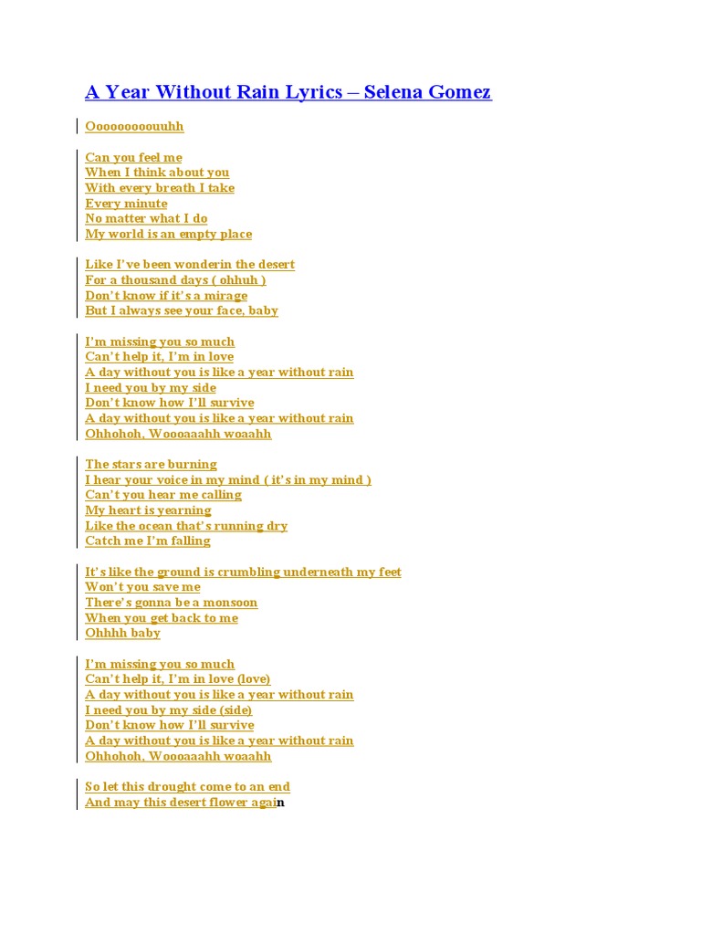 Discografia De Selena Gomez Can you feel me when i think about you with every breath i take every minute don't matter what i chorus: i'm missing you so much can't help it even now a day without you is like a year without rain i need you by my side don't know how else to find.