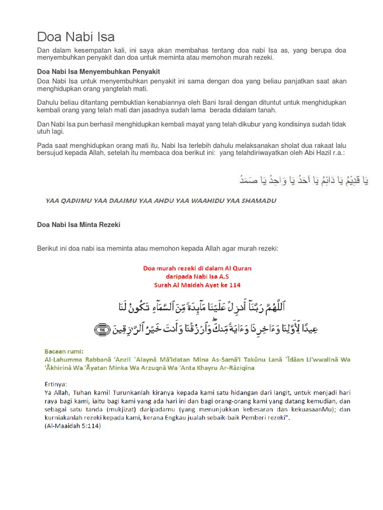 Doa Nabi Isa Memohon Rezeki / Selamat datang kembali di doaseharihari, yang dan dalam kesempatan kali, ini saya akan membahas tentang doa nabi isa as, yang berupa doa menyembuhkan penyakit dan doa untuk meminta atau memohon murah rezeki. May 09, 2020Uncategorized