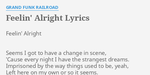 Chords For Grand Funk Railroad Feelin Alright Baby, you sure took me on one big ride and, even now i sit and wonder why then, when i think of you, i start to cry i know.