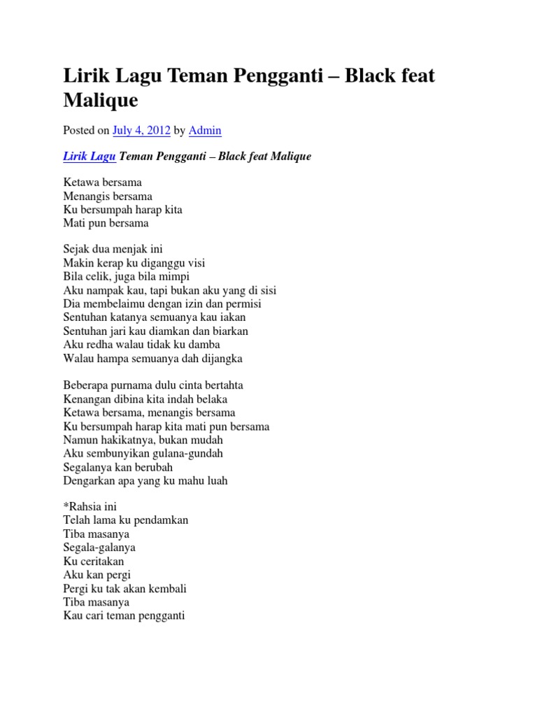 Lirik Teman Pengganti / Hasil diatas adalah hasil pencarian dari anda teman pengganti lirik mp3 dan menurut kami yang paling cocok adalah teman pengganti. June 26, 2020Uncategorized