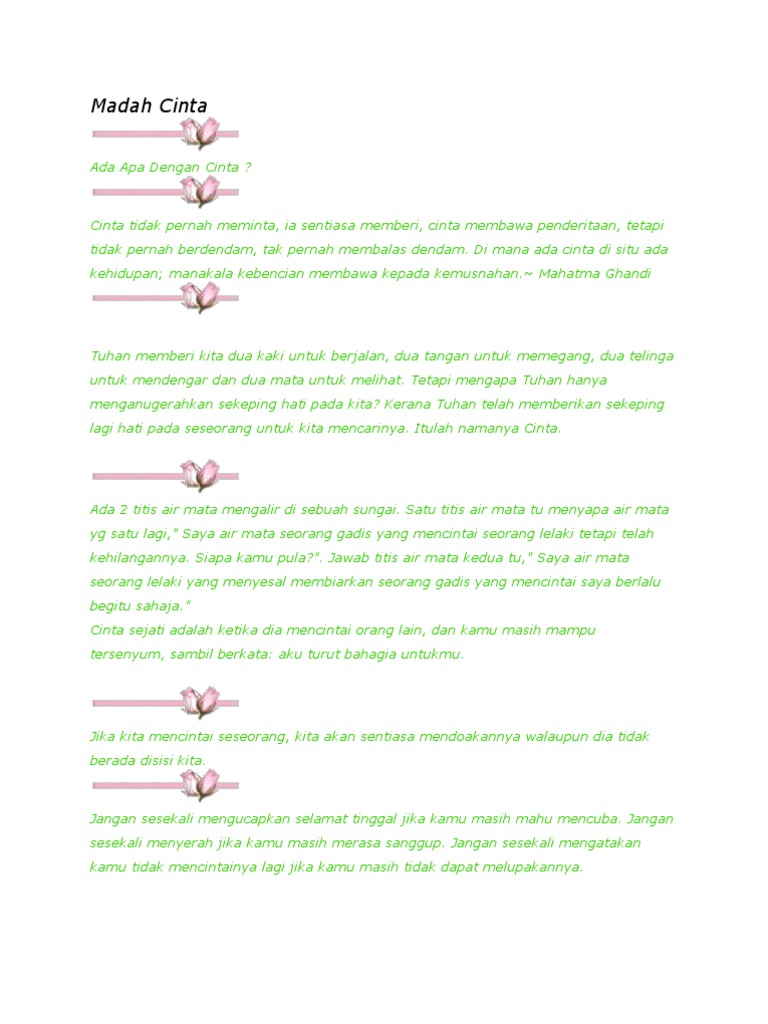 Madah Cinta Luka : Dan walauapapun rintangan melanda ku harap kita kan tempuhi bersama seadanya kau dan ku berjauhan. June 22, 2020Uncategorized