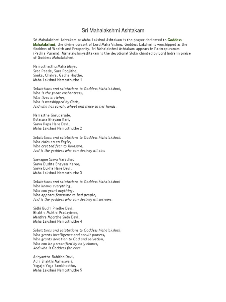 Mahalakshmi Ashtakam : Download mahalakshmi ashtakam by clicking below you can free download mahalakshmi ashtakam in pdf format or also can print it. December 07, 2020Uncategorized