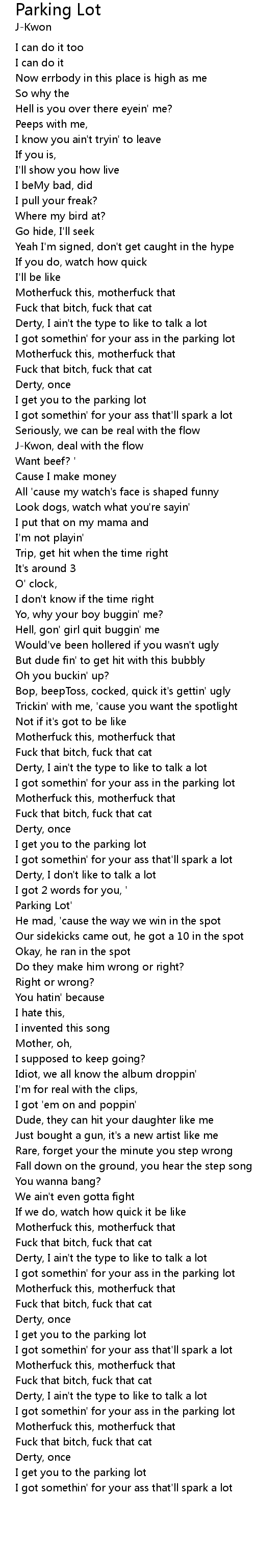 Parking Lot Lyrics - Running through the parking lot he.