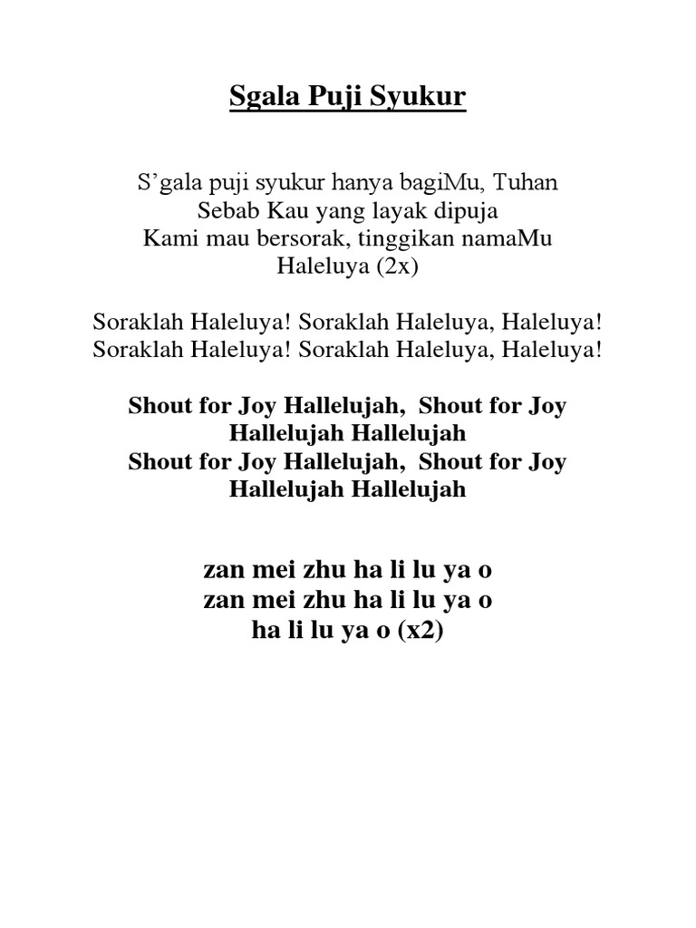 Segala Puji Syukur Lirik : Soraklah haleluya, soraklah haleluya, haleluya. April 09, 2020Uncategorized