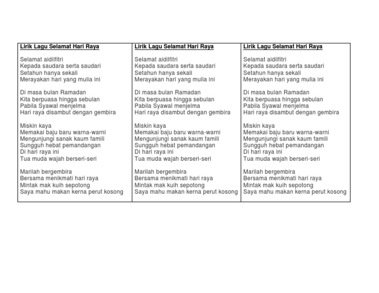 Selamat Hari Raya Lirik : Selamat hari raya ramai ramai gembira merayakan hari mulia. April 27, 2020Uncategorized