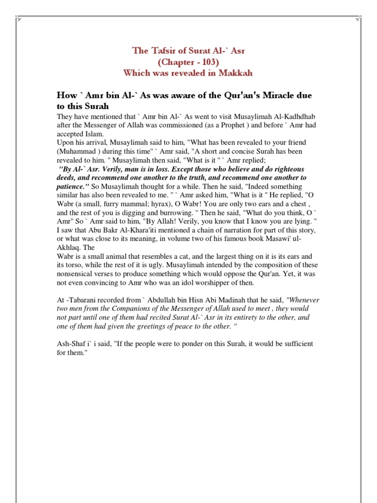 Surah Al Asr - Read and learn surah asr with translation and transliteration to get allah's blessings. April 18, 2020Uncategorized
