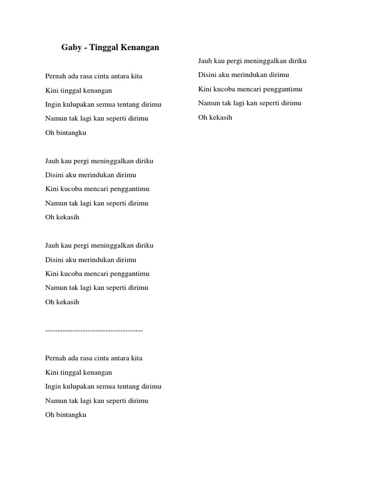 Tinggal Kenangan Lirik : Are you see now top 10 tinggal your results: