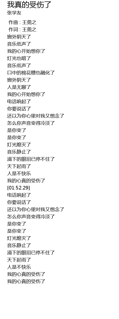 Wo Zhen De Shou Shang Le Lyrics - Wo de xin zhen de shou shang le.