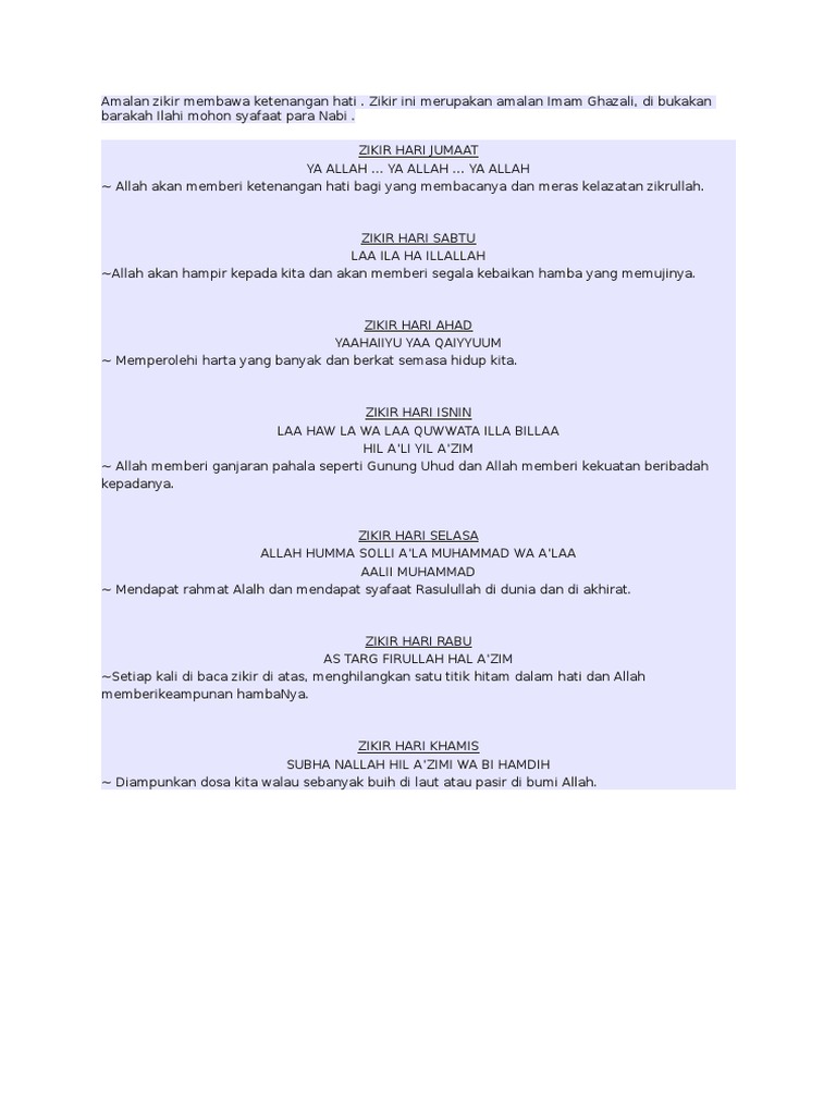 Zikir Hari Sabtu : Anda akan diberikan ketenangan jiwa.